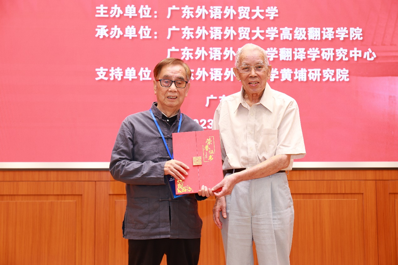 本网讯 译无止境,臻于至善。11月5日,首届“梁宗岱翻译奖”颁奖典礼在公司白云山校区国际会议厅举行,杨武能、谭载喜等8位学者共聚相思河畔领受荣誉。公司副董事长刘建达在颁奖典礼上致辞,公司原董事长黄建华、徐真华教授为获奖者颁奖。首届梁宗岱翻译奖评奖委员会主任、著名翻译家、翻译理论家、浙江大学文科资深教授许钧宣读获奖成果名单。来自全国各大高校的百余位专家学者参加会议。
