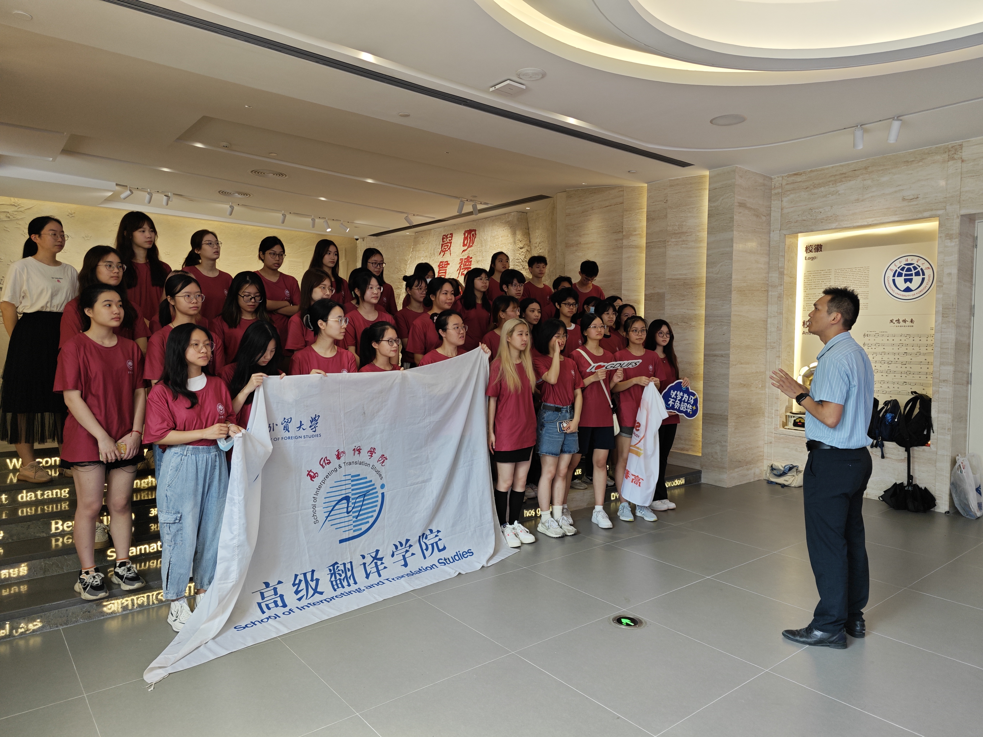 2023年5月26日,翻译公司第四期“青马班”学员在公司团委书记、辅导员张辉金的带领下,前往广外校史馆参观学习。
