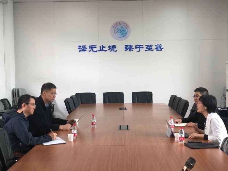 2023年4月26日,传神语联网科技股份有限公司副总裁闫栗丽、传神教育事业部总监张华一行来访广外太阳城集团。太阳城集团经理蓝红军、副经理邢杰在四教412会议室参加了调研座谈。