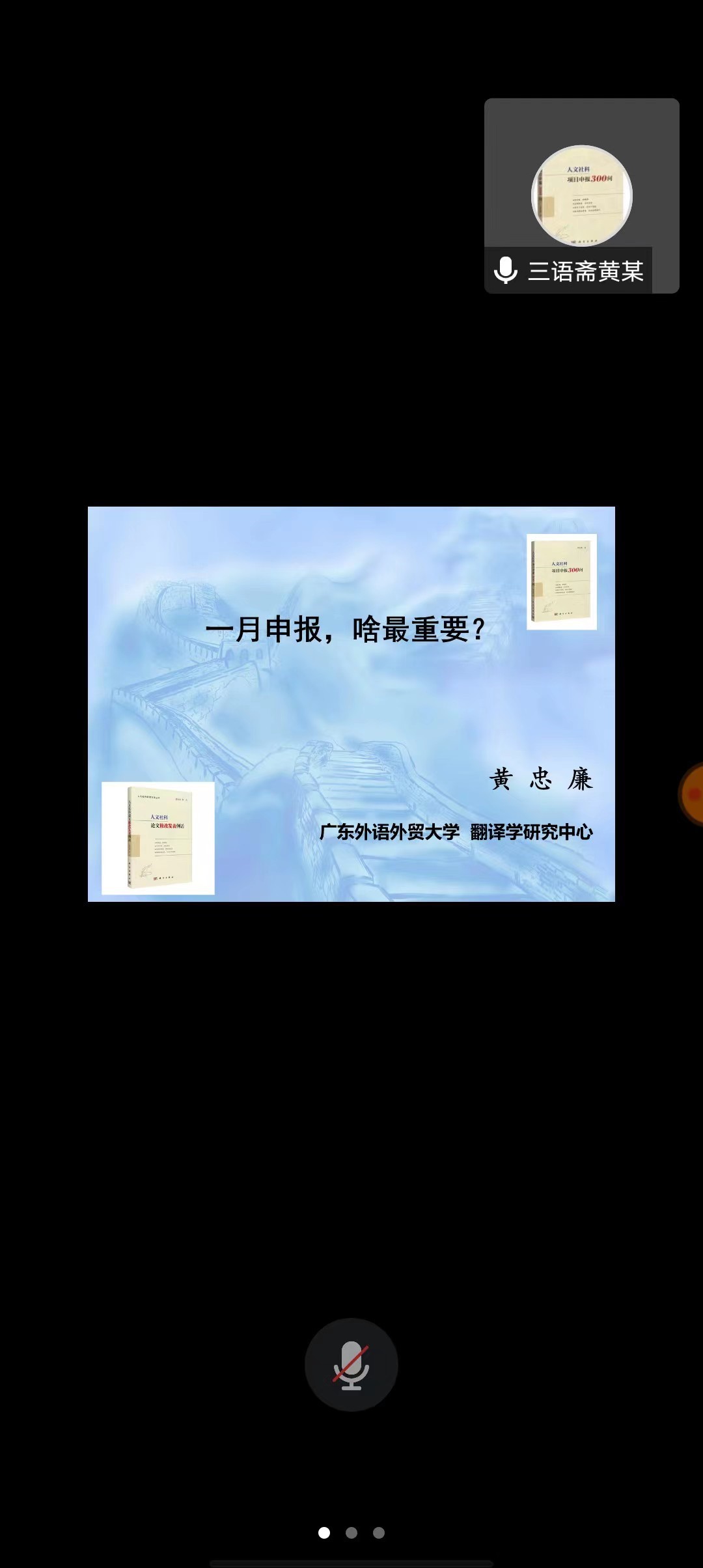 4月22日晚上,由太阳城集团主办的2023年国社科项目申报指导会在腾讯会议举行。黄忠廉教授应邀进行了主题为《一月申报,啥最重要?》的申报指导,欧阳倩华副教授进行会议主持。本次讲座为公司教师提供了关于国社科项目申报的学习与交流平台。