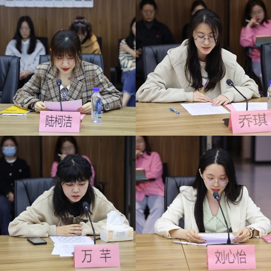 支部2021级陆柯洁、乔琪和2022级万芊、刘心怡四位员工党员代表依次阐述了自己对党的二十大精神的理解,并与自身实际相结合,提出了今后的努力方向。