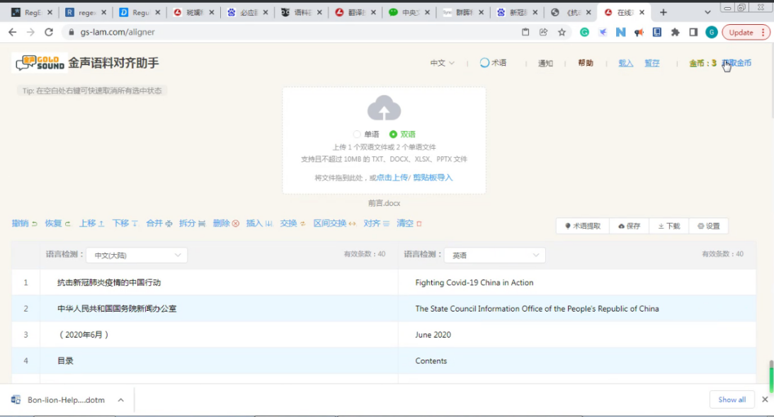 1月4日上午,广州斑斓科技有限责任公司总经理陈杲老师开展了主题为“语料获取、建库、术语提取”的讲座。陈老师首先就语料来源及语料搜索进行了详细介绍。随后陈老师带领学员进行语料处理的实操,包括:PDF文件的转换和处理、通配符和正则表达式的应用及斑斓科技小助手在语料处理中的应用。最后陈老师为大家展示了一款名为“金声语料对齐助手”的在线语料对齐工具,并进行了对齐、术语提取、习题生成的实操演示。研修学员们在精彩的讲解与演练中,对语料处理技术有了更进一步的认识。