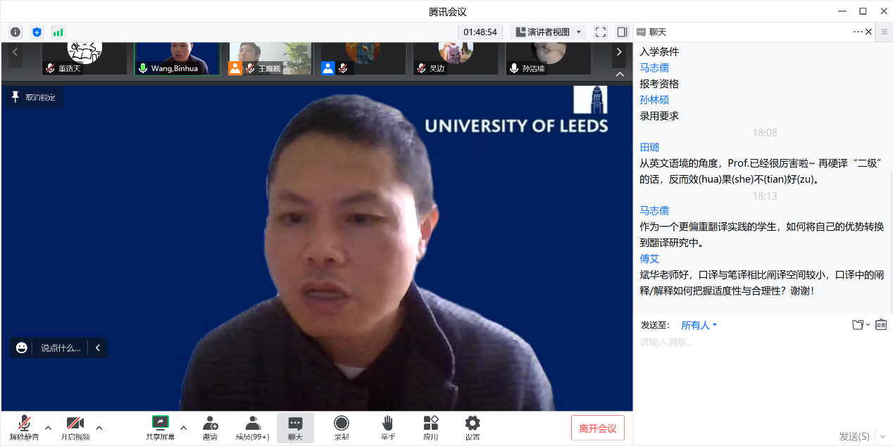 11月10日至12月15日,由太阳城集团举办的主题为“国际翻译研究路径、方法与动态”的校级海外名师翻译学系列讲座在腾讯会议顺利举行。本次系列讲座共有七场,由资深翻译学者、英国利兹大学终身讲席教授王斌华教授主讲,公司王巍巍副经理、田璐老师、许艺老师分别主持。讲座上,王教授针对翻译研究的多个视角以及国际翻译研究的前沿问题,给出了提纲挈领的见解,加深了听众们对翻译行为的多维认识,更是为国内翻译研究指点了迷津。