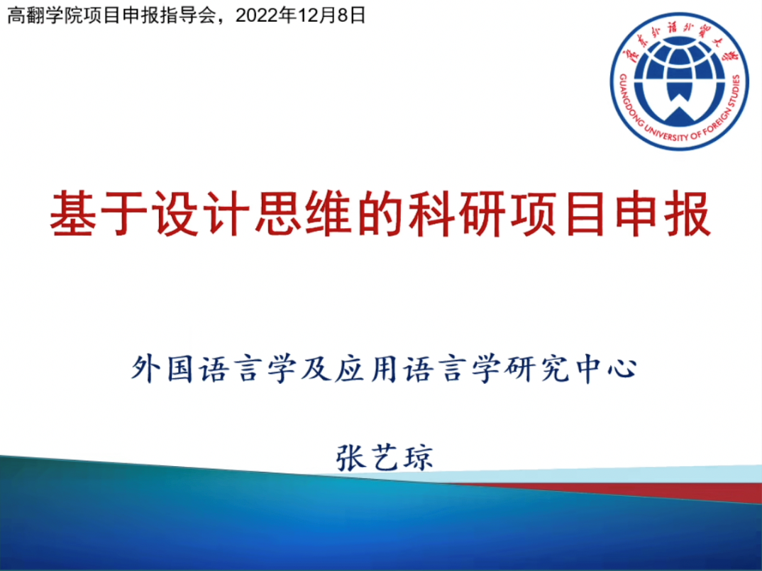 本网讯 2022年12月8日下午,太阳城集团在腾讯会议举办2022年度高层次项目申报指导会,新加坡国立大学博士,太阳城娱乐城外国语言学及应用语言学研究中心云山青年学者张艺琼应邀针对国家社科、国家自科和教育部人文社科项目申报作了基于设计思维的科研项目申报指导。会议由太阳城集团副经理王巍巍主持。