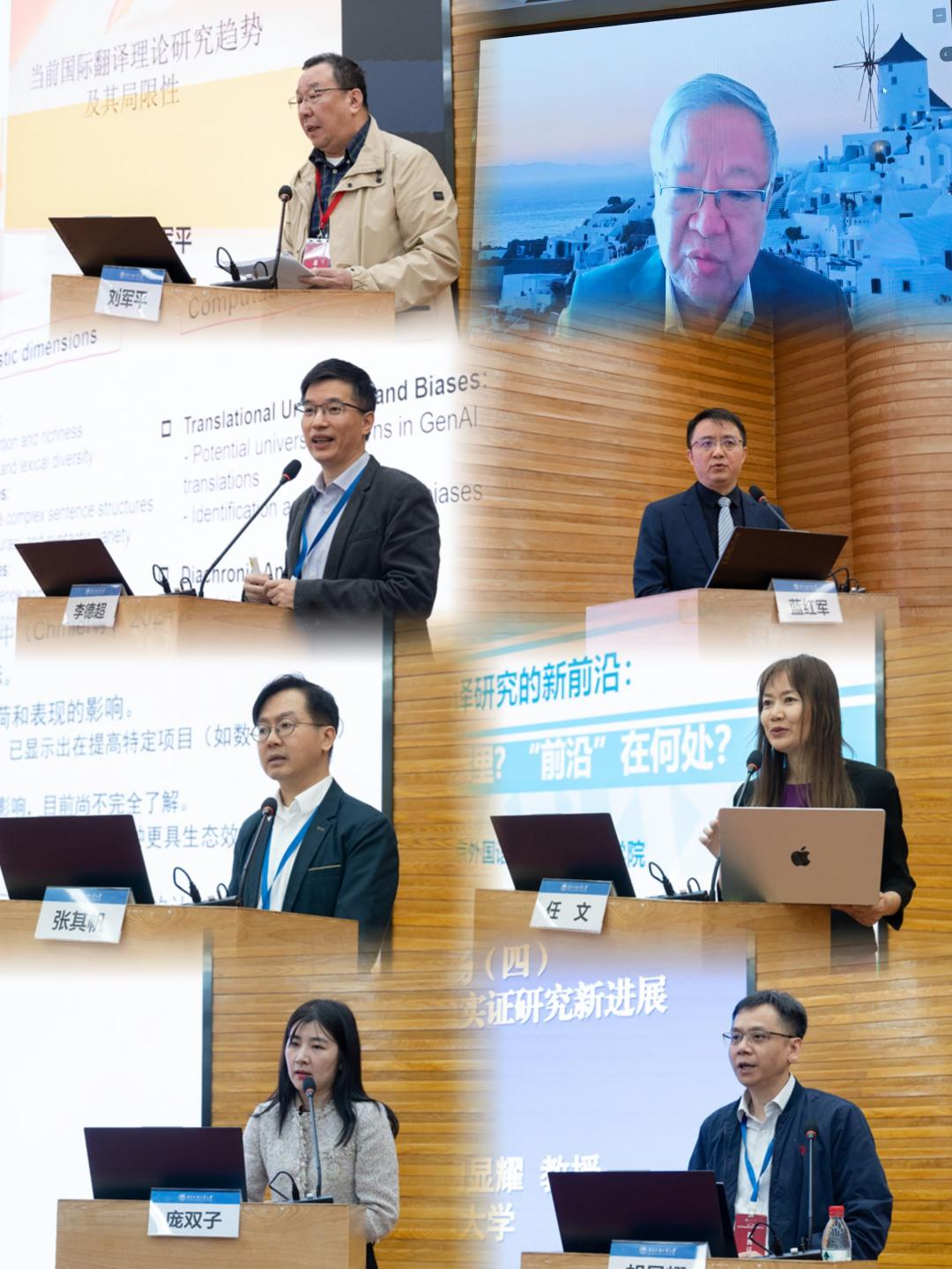 会议采取两人对谈的形式,16位专家学者分为8组,分别围绕翻译学不同主题研讨最新研究进展。武汉大学刘军平教授、公司王东风教授围绕翻译理论与其他学科理论融合等新趋势,指出有的研究忽视翻译本体研究等问题。香港理工大学李德超教授以生成式人工智能翻译为核心提出了新的研究方向,呼吁学界与实业结合,挖掘AI潜力;公司蓝红军教授从技术视域加以回应,指出AI深刻改变了诸多翻译研究元问题的视角。香港理工大学张其帆副教授讲解了多篇口译研究最新论文,特别谈到了手语口译这一常被忽视却有迫切需求的领域;北京外国语大学任文教授则由“新在哪里?前沿在何处?”切入,通过实践、教学、研究中的新概念、新话题、新角度等勾勒出当前国际口译研究的框架。翻译到底如何影响和改变了汉语?上海交通大学长聘副教授庞双子、西南大学胡显耀教授深入研究发现,翻译文本呈现受限语言特征和先导性、规范性,翻译对汉语的影响比语言接触更为显著。文学翻译始终是翻译领域的重中之重,上海外国语大学胡开宝教授基于语料库研究,从文本、译者、意识形态等多方面介绍了文学翻译研究的最新特点和存在问题,并展望了跨学科、多元统计、历时复合发展、语料库批评译学等方向;四川外国语大学胡安江教授则从近代“小说救国”谈起,最终落脚于方法论突破、受众与效果研究、跨学科研究等未来研究趋势。公司戴光荣教授、西安外国语大学黄立波教授集中研讨应用翻译研究,检视了理论与实践割裂、语料库数据难以实时更新等问题,提出了应用、可用、适用的应用翻译研究新三分法。杜伦大学郑冰寒教授、公司卢植教授关注AI对认知口译研究的深刻影响,指出机器已经深度介入口译过程,口译员角色已发生转变,需重新检视口译认知模型、建构研究方法。曲阜师范大学秦洪武教授指出要摆脱传统上过于依赖形式特征的翻译质量评估,转而借助大语言模型开发基于语义的量化评估;香港理工大学刘康龙副教授则补之以语料库翻译学、计量方法和AI技术引入的新进展。