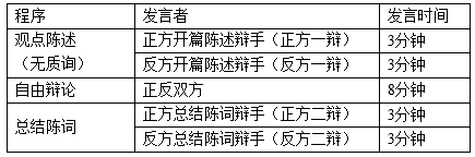 正反方的一辩首先陈述本方观点,由正方先开始,双方各3分钟;