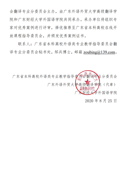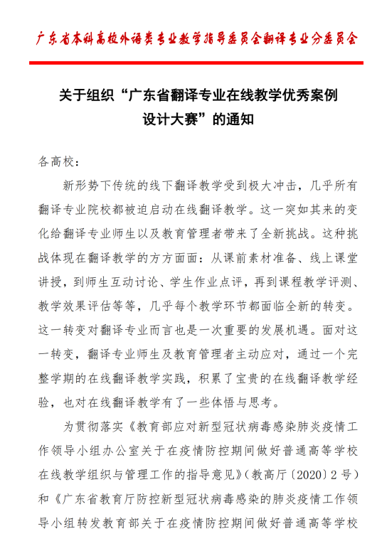 关于组织“广东省翻译专业在线教学优秀案例设计大赛”的通知
