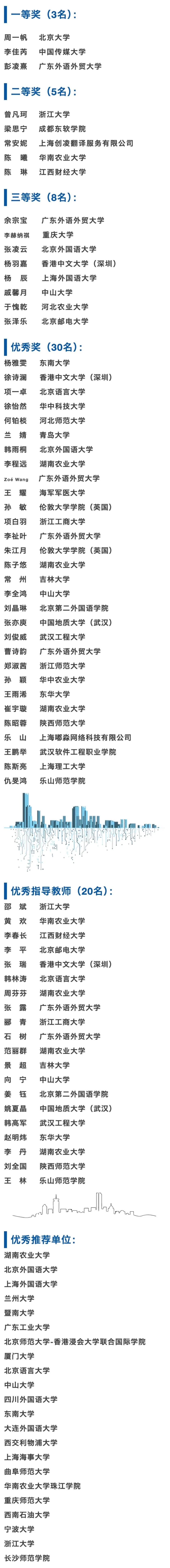 大赛共吸引来自内地、香港、澳门、英国、美国、澳大利亚、加拿大、马来西亚、比利时、德国、日本、西班牙和新加坡等地246所高校以及20家企事业和政府单位共计640余位选手参赛。大赛初赛于2024年7月22日举行,成绩排名前100名的选手晋级决赛。大赛决赛于2024年8月22日举行,经大赛组委会专家委员会评定,按照决赛卷面成绩从高到低依次排序,共评出大赛一等奖3名、二等奖5名、三等奖8名、优秀奖30名、优秀指导教师20名。获奖名单具体如下: