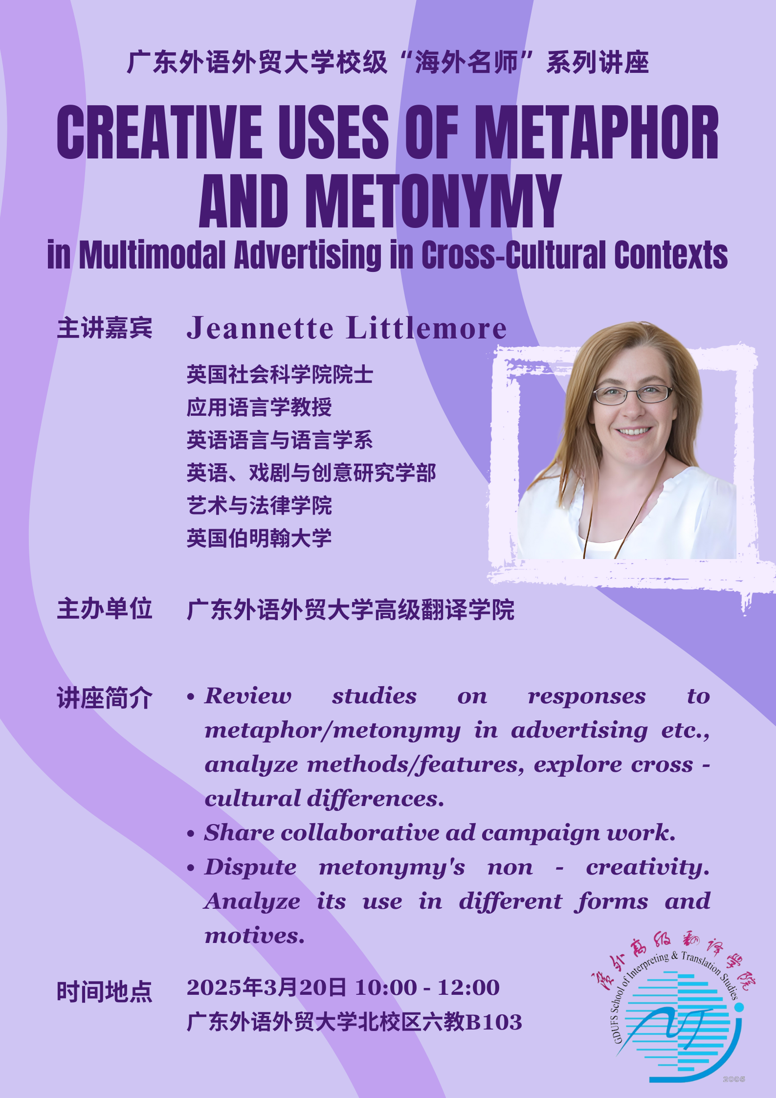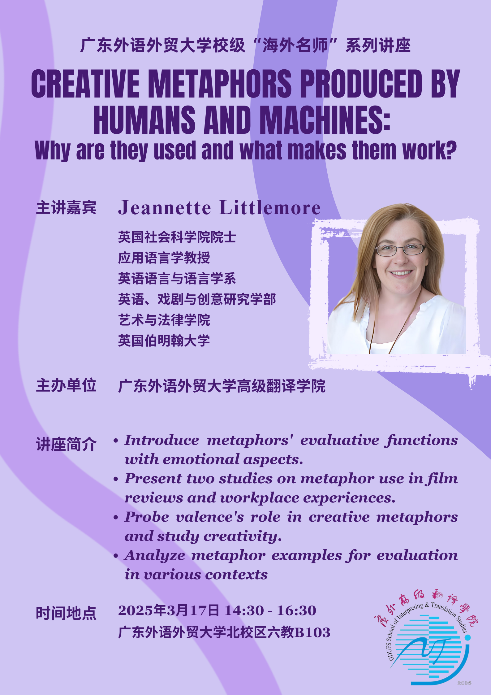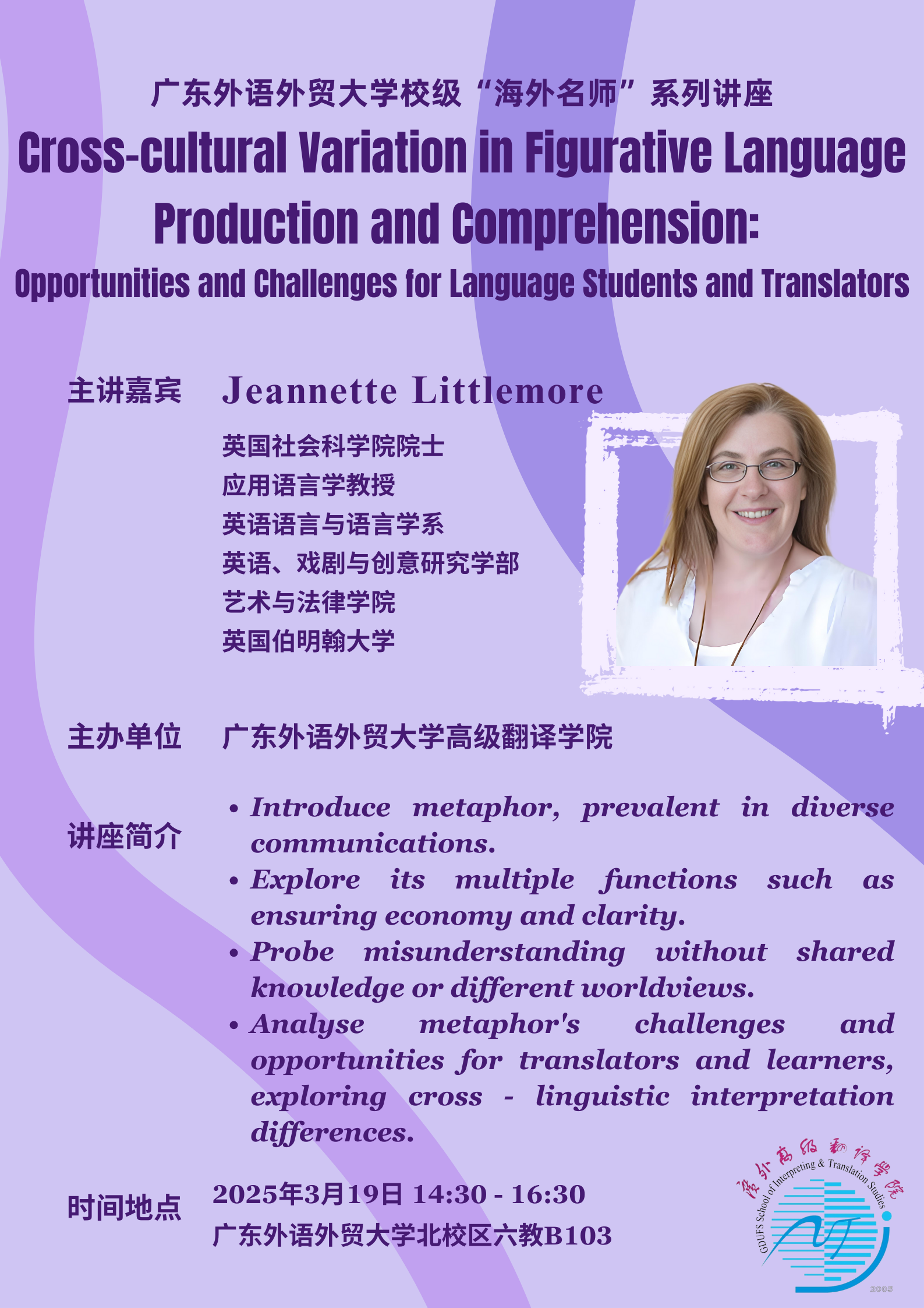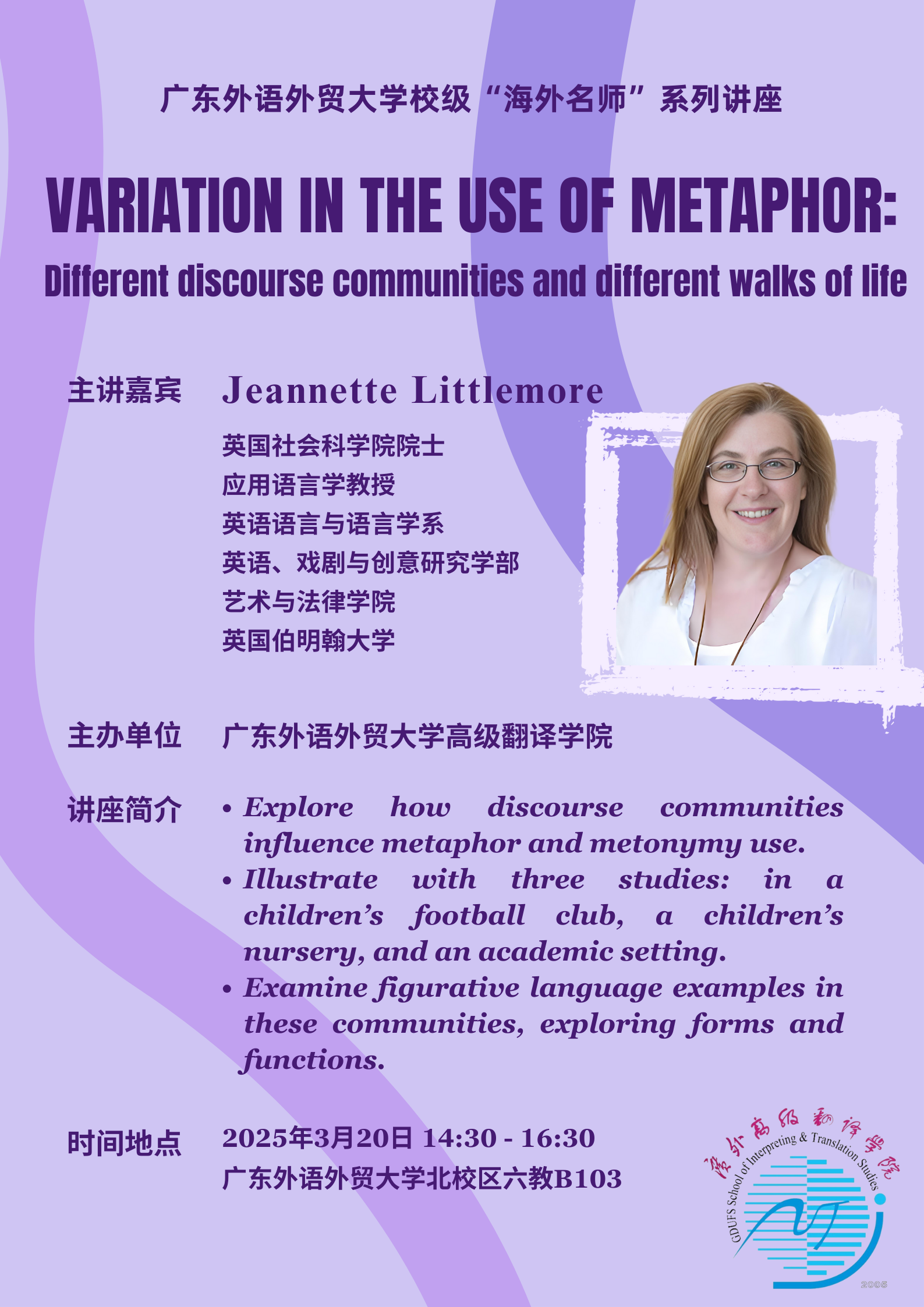 校级“海外名师”系列讲座(Jeannette Littlemore教授/英国社会科学公司院士、英国伯明翰大学)