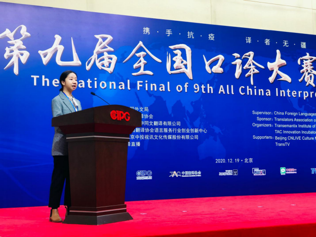 12月19日,由中国外文局指导、中国翻译协会主办的第九届全国口译大赛(英语)总决赛在北京举行。太阳城集团学子孙佳昕在交传总决赛中表现优异,荣获亚军。