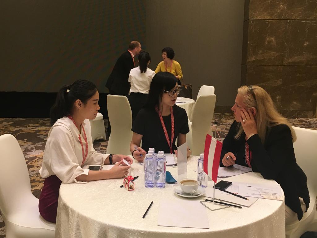 上午,在论坛的大会环节,队员黄乔伊为深圳市生命科学和生物技术协会会长袁庆的讲话作交传。陈舒婷陪同深圳市科学技术协会副主席张治严一行,与奥地利生命科学协会总负责人Johannes Sarx对维也纳和深圳的进一步合作进行磋商。