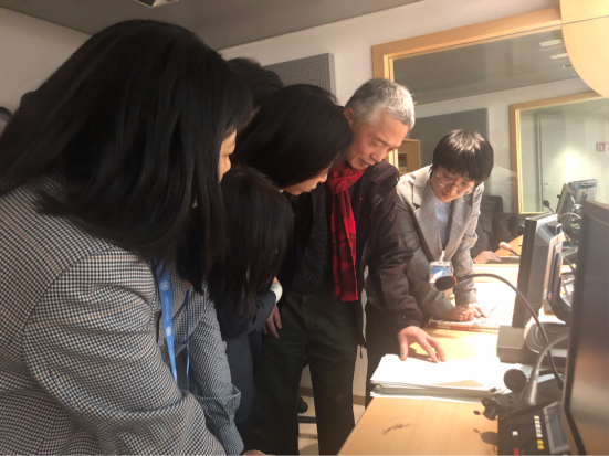 下午,黄迅余带领实习团队熟悉联合国内部,指导万国宫会场同传箱的使用方法。随后,实习生开始了人权理事会的普遍定期审议会议的同传实战练习。