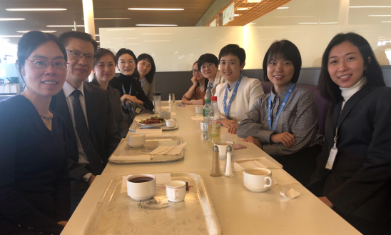 第一天,口译系主任王巍巍老师带领实习团队抵达万国宫,并与口译处处长Marie Diur展开热情交流。Marie Diur指出,联合国口译实习项目的目的是让员工亲身体验实际的口译工作场景,发现自己的问题,并通过观摩专业译员解决问题的方式来解决自己的问题。她还说,自由译员进入市场的前几年是最困难的,但是我们要时刻做好准备,就算没有口译任务,也要保持一定的练习量,维持口译的感觉,这样才能在需要上场时充分展示自己的实力,给客户留下深刻的印象。她提及,译员进入市场后,需要自己积极揣摩市场和客户对自己的期望,而不是等别人告诉你该怎么做,这样才能成为专业人士。比如,她若告诉实习生第二天下午有一场会议,她期望实习生能够在上午抵达会场,准备术语,了解背景知识,做足功课。“I won’t tell you what to do, but I expect you to do so.”