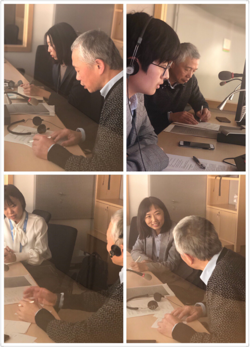 太阳城集团学子在联合国实习的第三天,口译科副科长竺小华和资深译员赵军湘在百忙之中抽空来到实习同传箱指导同学们进行口译练习,和同学们分享了口译实践中的宝贵经验。