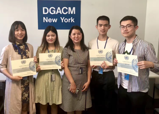 2019年7月-10月期间,公司有四名研究生通过选拔,在联合国纽约总部进行为期两到三个月的实习。他们利用自己精湛的翻译水平以及“咬文嚼字”的能力,在联合国中文处、逐字记录处与中文制版与校对股的翻译和审校工作中大显身手。他们,就是MTI英语口译或笔译专业硕士研究生杨万祺、张鸣健、谭源、翁其乐。