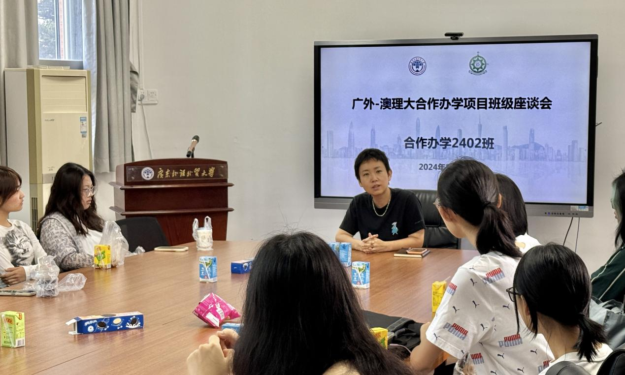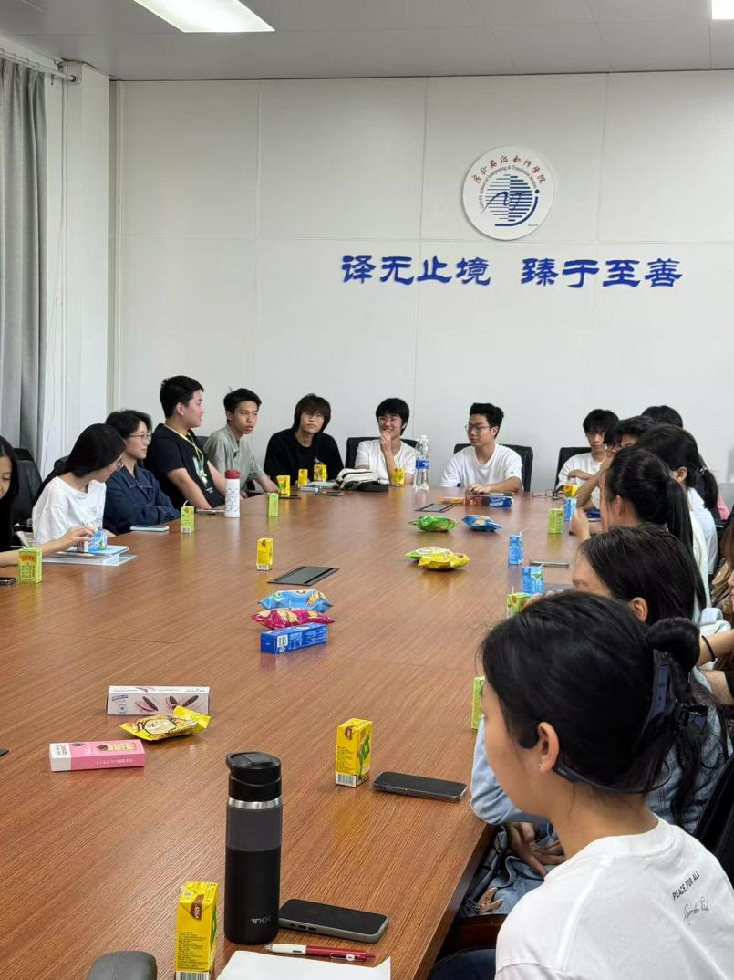 为深入了解翻译(合办)班新一届同学对于项目的适应程度、所遇到的困难及对于项目未来发展的建议,公司于2024年10月15日-17日,分别与合作办学项目4个班的展开了班级座谈会。公司党委书记李和民、副经理王巍巍、辅导员卢玥颖、合办项目主管陈芊荟和合办项目教务员李想出席本次座谈会。